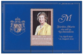 Codes generierbar sind: Schloss (23’600 Kryptobriefmarken), Ritter (14’000), Prinzessin (4’300) und Fürst (100). Daneben wurde eine Sonderedition des Blocks mit Hologrammfolie für CHF 60 (Nennwert ebenfalls 520 Rp.) angeboten, wieder mit unterschiedlichen Häufigkeiten: Schloss (1’400 Exemplare), Ritter (1’000), Prinzessin (700) und Fürst (100). Selbstverständlich bedingen die Auflagenhöhen unterschiedliche Preisentwicklungen. Für die seltenste Sonderedition mit dem Motiv «Fürst» müssen heutzutage bis zu € 400 hingeblättert werden. Dem Zeitgeist entsprechend errang die «Briefmarke 4.0» den «Runner-Up-Preis» des Innovation Award 2021 von PostEurop. Rasch folgten weitere Ausgaben: Erster Todestag von Fürstin Marie (Abb. 8), Briefmarke 4.1 Blockchain Technologie «Gleichheit» (Abb. 9) und Briefmarke 4.2 Blockchain Technologie «Einigkeit» (Abb. 10). Die Produkte, die in einer Verpackung veräussert wurden, ohne die beinhaltete Variante zu verraten, waren nach offiziellen Mitteilungen innerhalb weniger Minuten oder Stunden ausverkauft. Interessant wäre es zu eruieren, ob in erster Linie Briefmarkensammlerinnen und -sammler oder Personen mit anderen Intentionen dem Hype folgten, denn wer die auflagenniedrigste Variante «erwischte», konnte auf eine Multiplizierung seines finanziellen Einsatzes beim Wiederverkauf spekulieren, sofern sich der in die Höhe geschossene Buchwert in Cash realisieren lässt. Das Glücksspiel beim Briefmarkenerwerb - Spannung! Freude! Enttäuschung? Alles ist denkbar.