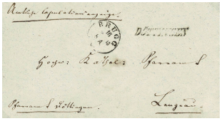 Portofreie amtliche Kopulationsanzeige des Pfarramtes Döttingen Februar 1863 an das Pfarramt Lengnau. Obwohl eine Pferdepost Richtung Lengnau - Baden besteht, nimmt die Postsendung vorschriftsgemäss zuerst den Weg ins vorgesetzte Postbüro Brugg und dann via Baden nach Lengnau.