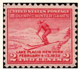 Die III. Olympischen Winterspiele fanden in Lake Placid NY statt. Am Eröffnungstag gab die Post der USA die allererste Briefmarke heraus, die den Olympischen Winterspielen gewidmet war. Die Auflage betrug mehr als 52 Mio. Briefmarken!