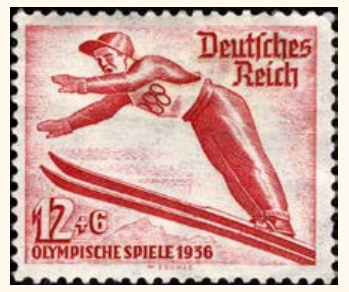 Im Jahr 1936 waren die bayerischen Städte Garmisch und Partenkirchen Austragungsorte der IV. Olympischen Winterspiele, deren Anlagen eigens für dieses Ereignis errichtet wurden. Das Deutsche Olympische Komitee nutzte diesen Anlass als Testfeld und Schaufenster für die kommenden Sommerspiele in Berlin. Im November 1935, lange vor den Spielen, wurde ein Satz von drei Briefmarken herausgegeben, um im Land und weltweit dafür zu werben. Für jede Briefmarke wurde ein Zuschlag zugunsten des Organisationskomitees erhoben.