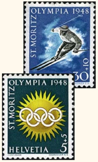 London, die Gastgeberstadt der Olympischen Sommerspiele 1948, zog sich, wie Amsterdam 20 Jahre zuvor, von der Ausrichtung der Winterspiele zurück. Die Wahl des IOC fiel dann, wie schon 1928, auf St. Moritz als Wintergastgeber. Die Schweizerische Post gab vier Briefmarken heraus: Zwei davon haben die olympischen Ringe als Hauptmotiv – eine Premiere für ein Gastgeberland. Österreich war das erste Nicht-Gastgeberland, das eine Sondermarke für die Olympischen Spiele herausgab, nachdem Uruguay 1924 und 1928 ihren Sieg beim olympischen Fußball turnier mit Briefmarken feierte und Portugal 1928 eine Briefmarke herausgab, die an zwei Tagen für die gesamte nationale Korrespondenz zwingend verwendet werden musste, um die Teilnahme der olympischen Delegation an den Spielen 1928 in Amsterdam zu finanzieren.