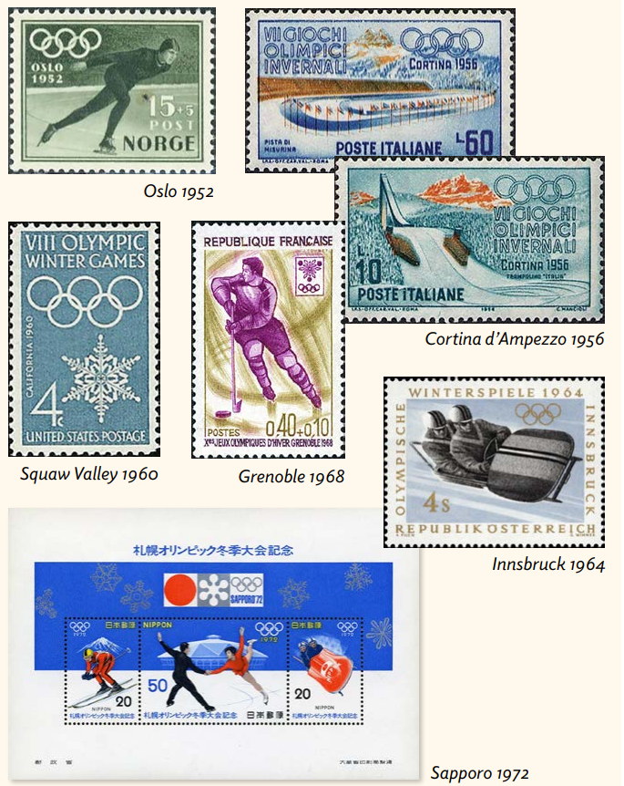 Die Organisation der IX. Olympischen Winterspiele wurden an Innsbruck in den österreichischen Alpen vergeben. Es wurden neue Anlagen gebaut, darunter das wunderschöne Eisstadion. Innsbruck war 1964 von Schneemangel bedroht. Das österreichische Bundesheer eilte zur Rettung und grub 20’000 Eisblöcke aus den Berghängen, um sie auf die Rodel- und Bobbahnen zu transportieren. 40’000 m³ Schnee wurden für die alpinen Skipisten herangekarrt. Die Österreichische Post gab eine Serie von sieben Briefmarken heraus, die den beliebtesten Disziplinen gewidmet waren. Darunter war das Rennrodeln, das sein olympisches Debüt feierte, nachdem es lange Zeit verboten gewesen war, weil es als zu gefährlich galt.