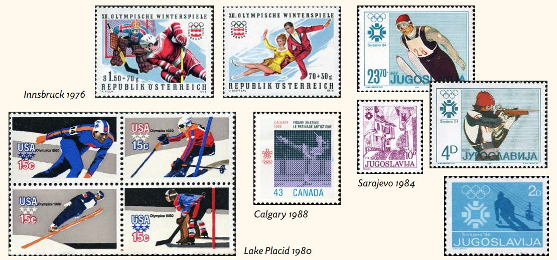 Ursprünglich wurden die Winterspiele 1976 an Denver vergeben, doch die Bevölkerung des Bundesstaates Colorado stimmte dafür, die Verwendung öffentlicher Gelder zur Unterstützung der Veranstaltung zu verbieten. Das IOC folgte der Einladung aus Innsbruck, das die für die Winterspiele 1964 genutzten Einrichtungen ein zweites Mal nutzen konnte. Die Österreichische Post gab zwei Serien zu je vier Briefmarken heraus, die den beliebtesten Veranstaltungen der Spiele gewidmet waren. Beide wurden im Vorfeld der Spiele herausgegeben und wiesen einem Zuschlag zugunsten des Organisationskomitees auf.