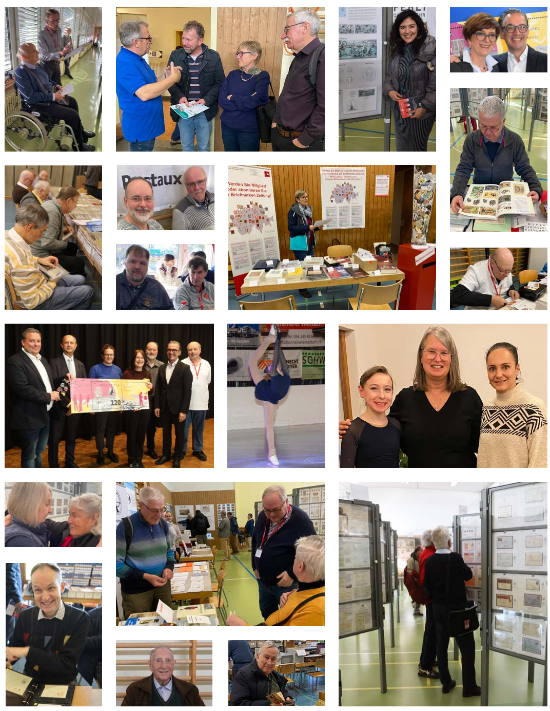 In den unspektakulären Räumlichkeiten war reges Treiben bei den Händlern im Schulturnsaal 1, hell und geräumig (aber etwas kalt …). Mit zufriedenen Gesichtern und stolz die Neuerwerbungen zeigend, tauchten die Sammler in der Turnhalle 2 auf, wo es bedeutend wärmer war. Lag es an den engagierten Gesprächen vor den Exponaten oder war es die gelöste Zunge durch den bekömmlichen Wein aus der Gegend, der im Bistro ausgeschenkt wurde? Da war ein Kommen und Gehen, regen Zuspruch fanden der Tisch des OK, die vertretenen Vereine und natürlich auch der Stand der Post Schweiz AG, die einen attraktiven Block anbot.
