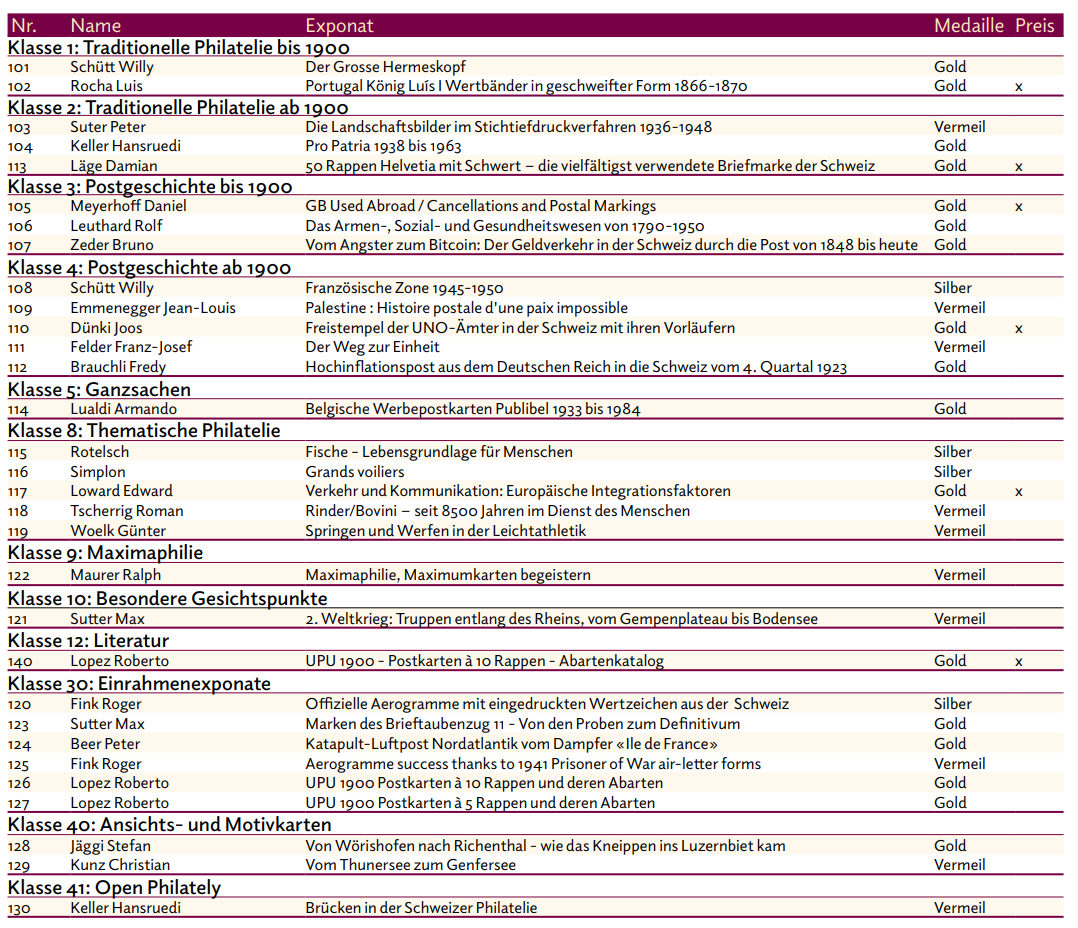 Im Vorfeld motivierte ich Sammler, sich dem Wettbewerb zu stellen. Das führte dazu, dass ich für mein Exponat schliesslich Nachtstunden aufwenden musste, um fünf Rahmen einlegen zu können. Und oje: da fehlten Stücke, die man doch zeigen sollte. War da nicht noch ein Album, das mir geschenkt wurde mit dem Satz: du sammelst doch so Zeugs? Und wie sollten die Belege richtig beschriftet werden? Wie war dieses Porto? Tausend Seiten im Buch von Giovanni Balimann durchblättern? Geht nicht mehr: also eine Mail an ihn, die er mir spätabends umgehend beantwortete: Herzlichen Dank an ihn und weitere Kollegen, die mir geholfen haben, dass die Schweissperlen nicht auf die Blätter tropften. Sicher erging es nicht nur mir so.
